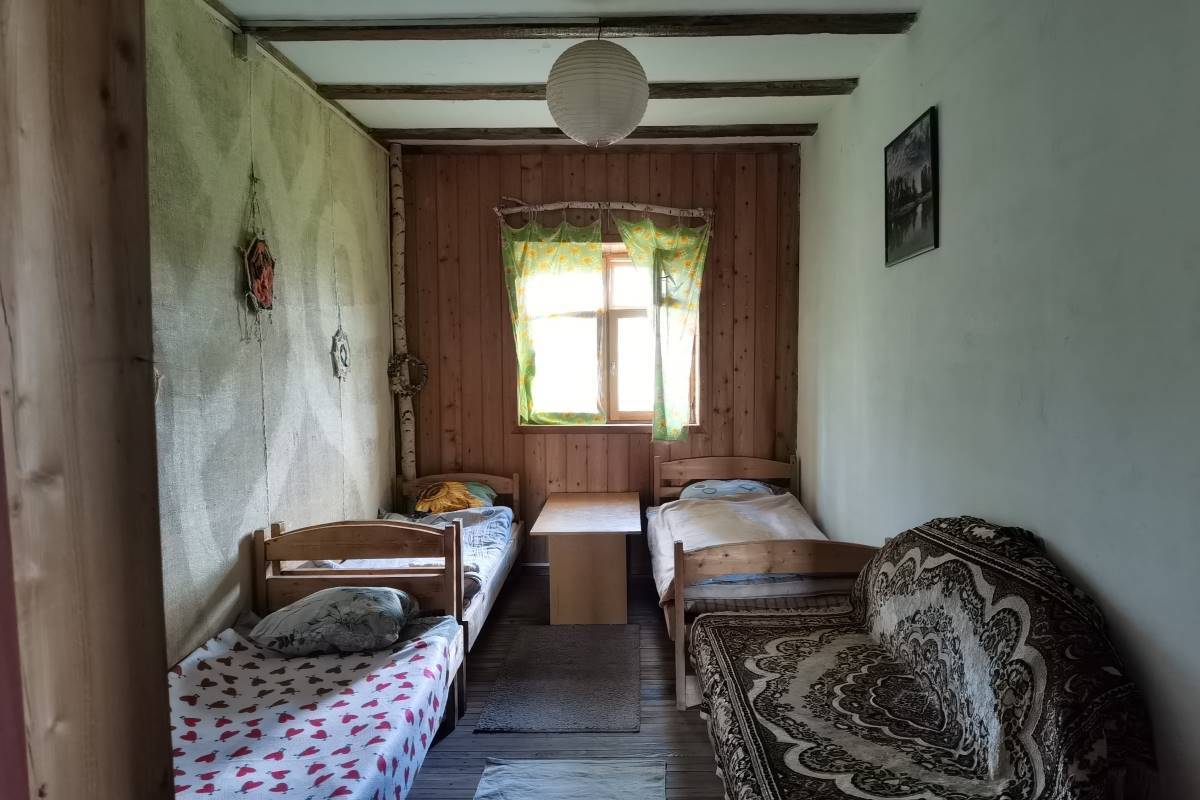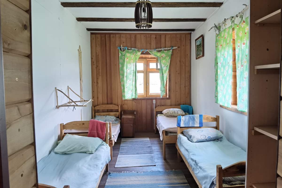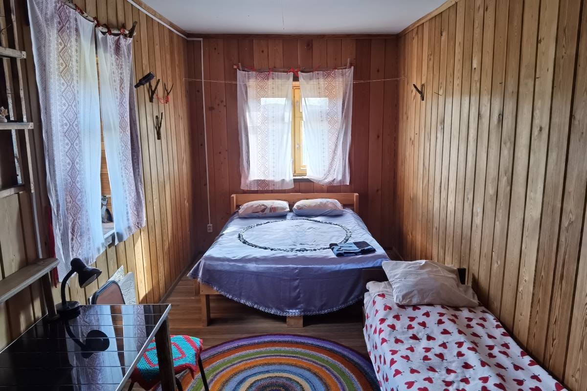В доме может одновременно разместиться 14 человек. Есть общая кухонная зона, туалет, душ. Стоимость одного места 1000-1500 руб. в сутки.